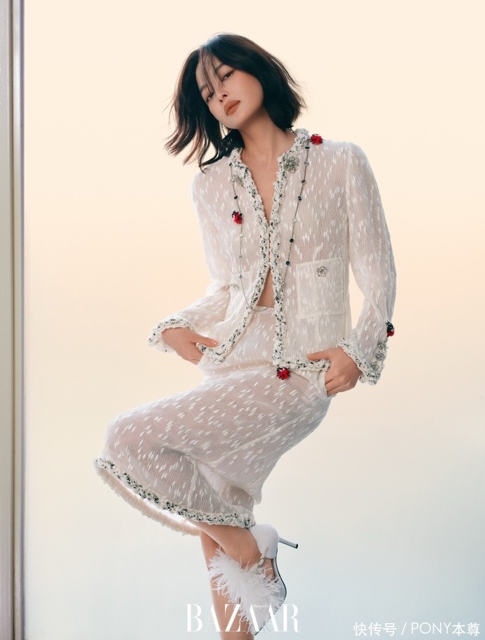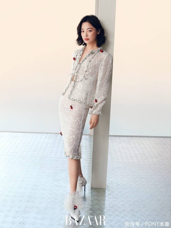 2026年流行透视感服饰!这套白色透视感套装,露出辛芷蕾优越的肩颈线条,既不会过于暴露,搭配一双毛毛装饰的白色高跟鞋,优雅又摩登。在发型上,辛芷蕾的中短发造型,让五官更显精致立体,尽显优雅气质!