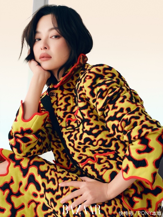 黄色动物纹路的套装,色彩更加明艳!这种类型的服饰还是比较挑长相的,像辛芷蕾这种略带野性的长相,驾驭起来完美适配!